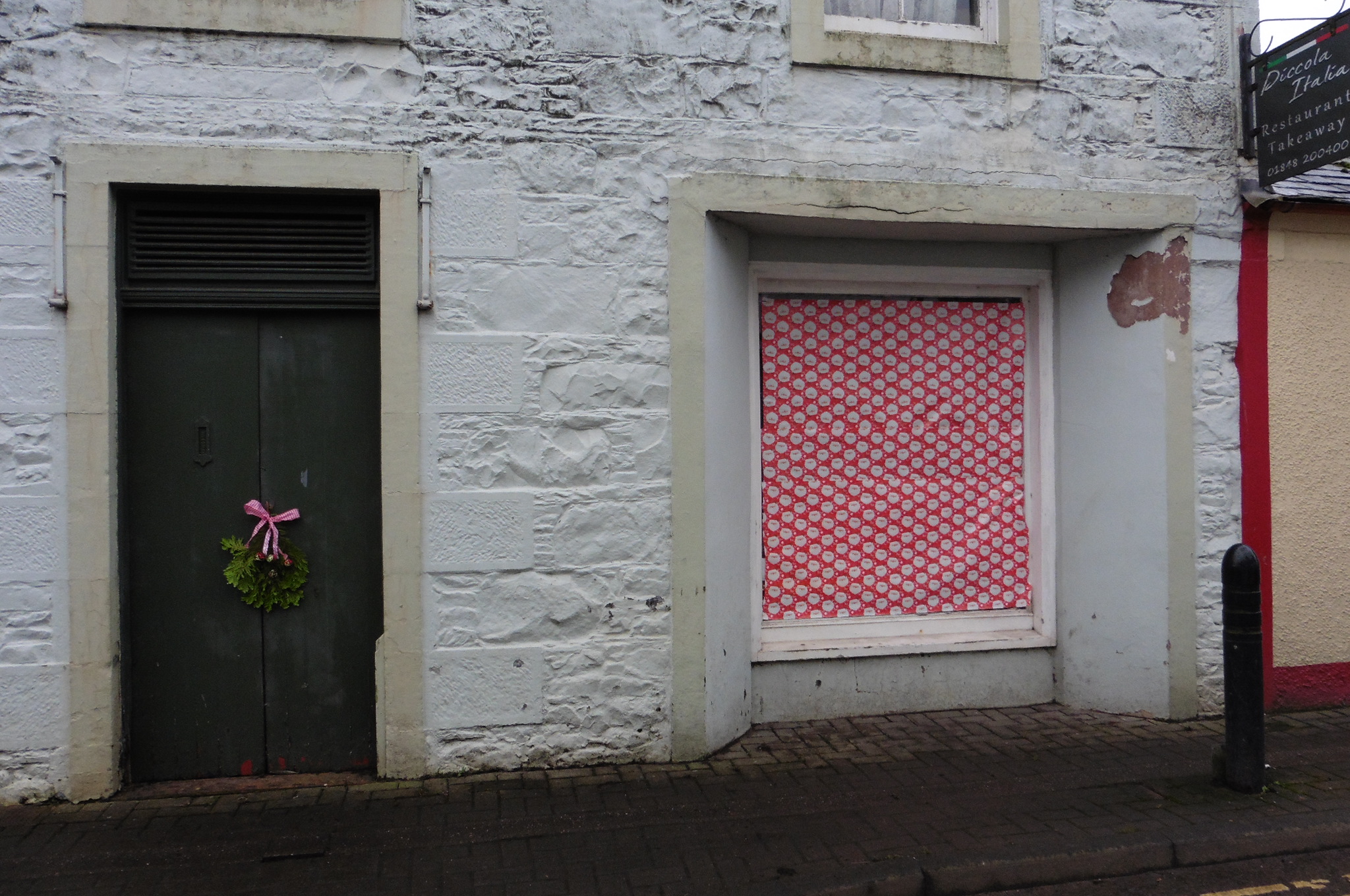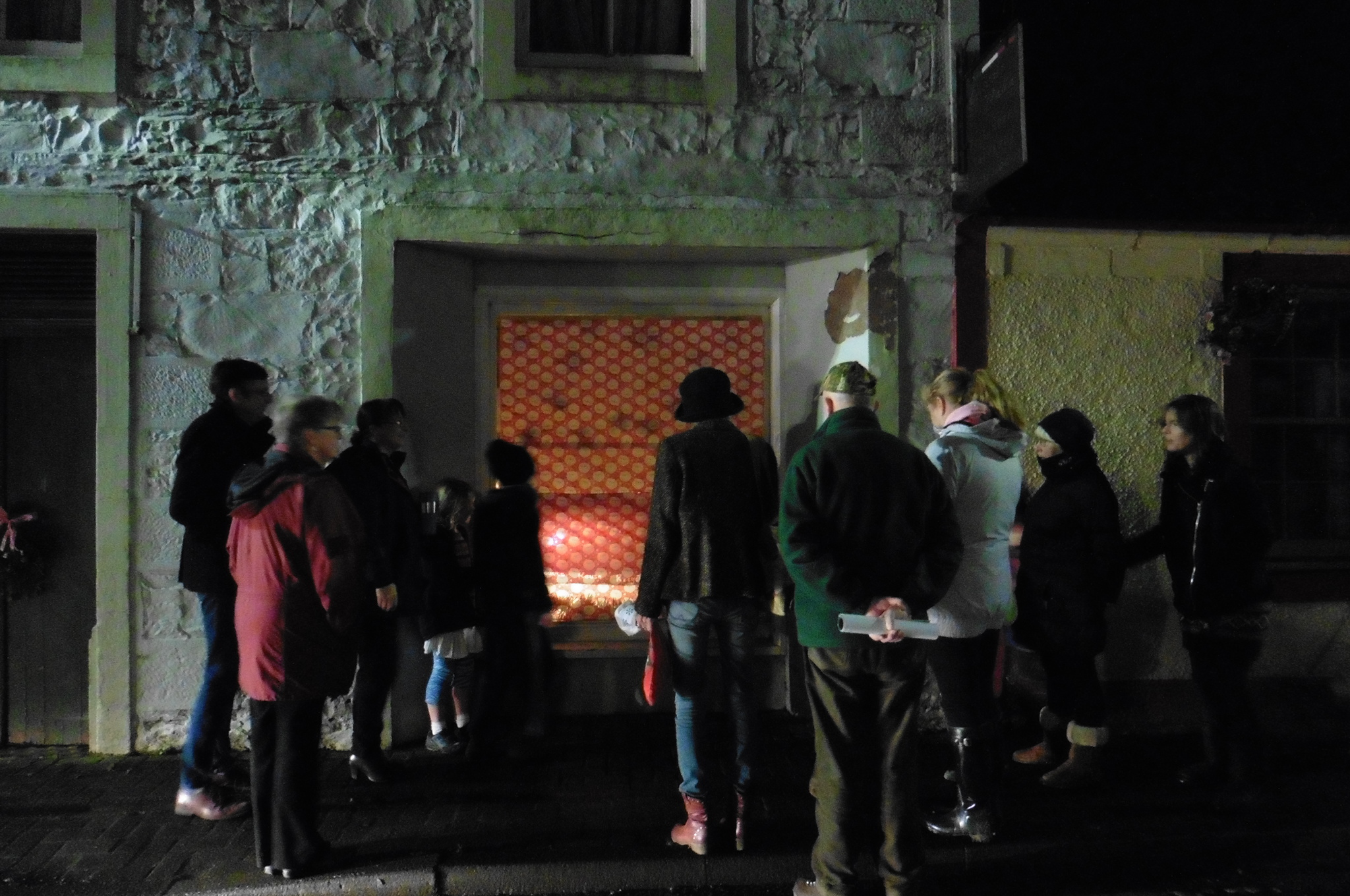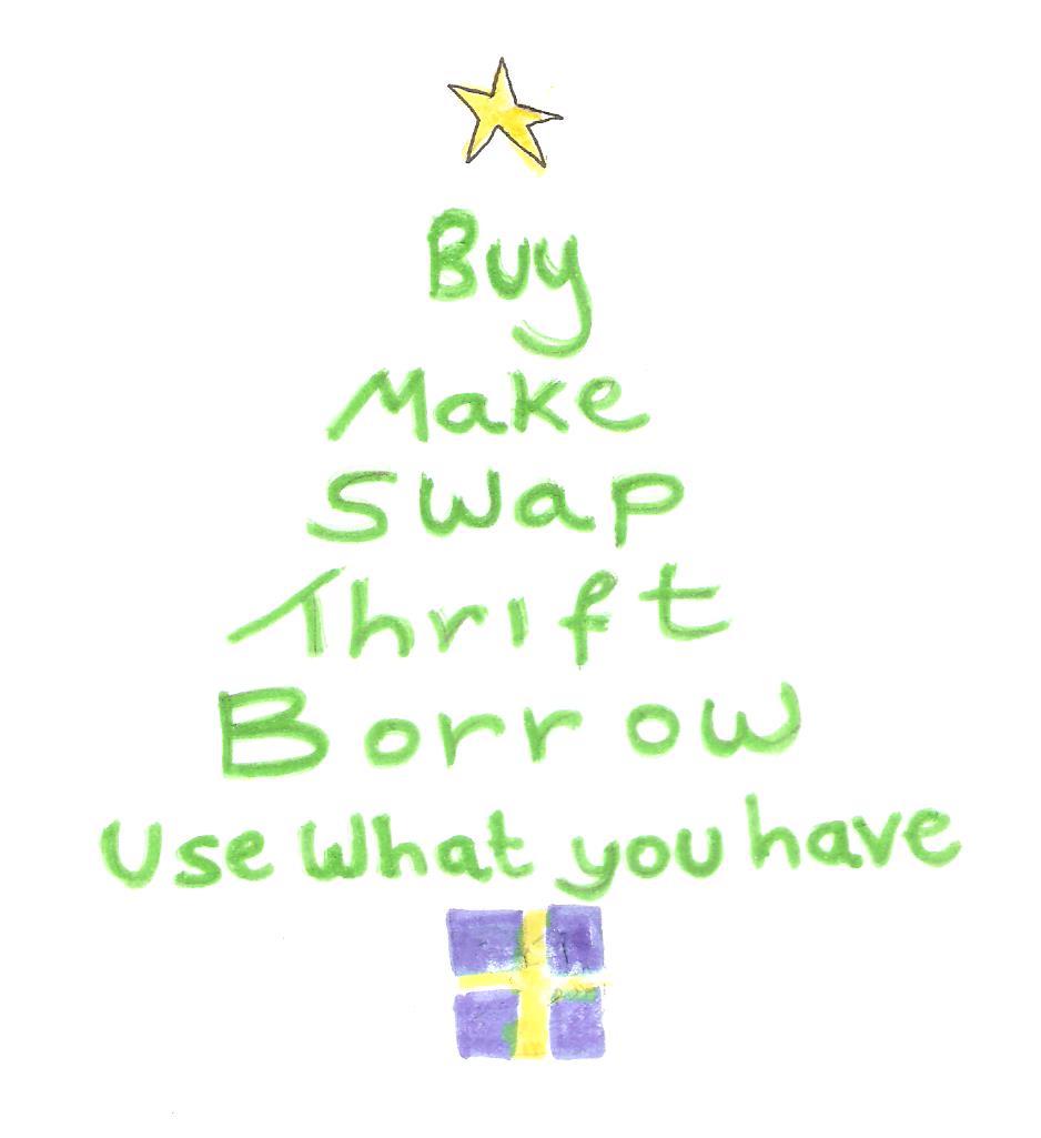 We would like to say ‘Thank You’ to the owner of Ebruchie for kindly letting us continue to use the shop window in the High Street. Our latest display, a “no-budget” Christmas Window, was unveiled as the first event of the Moniaive Living Advent Calendar on Monday 12th December 2016. Based on the ‘Buyarchy of Needs’, everything in the display is borrowed, recycled, upcycled, eco-friendly and/or handmade.