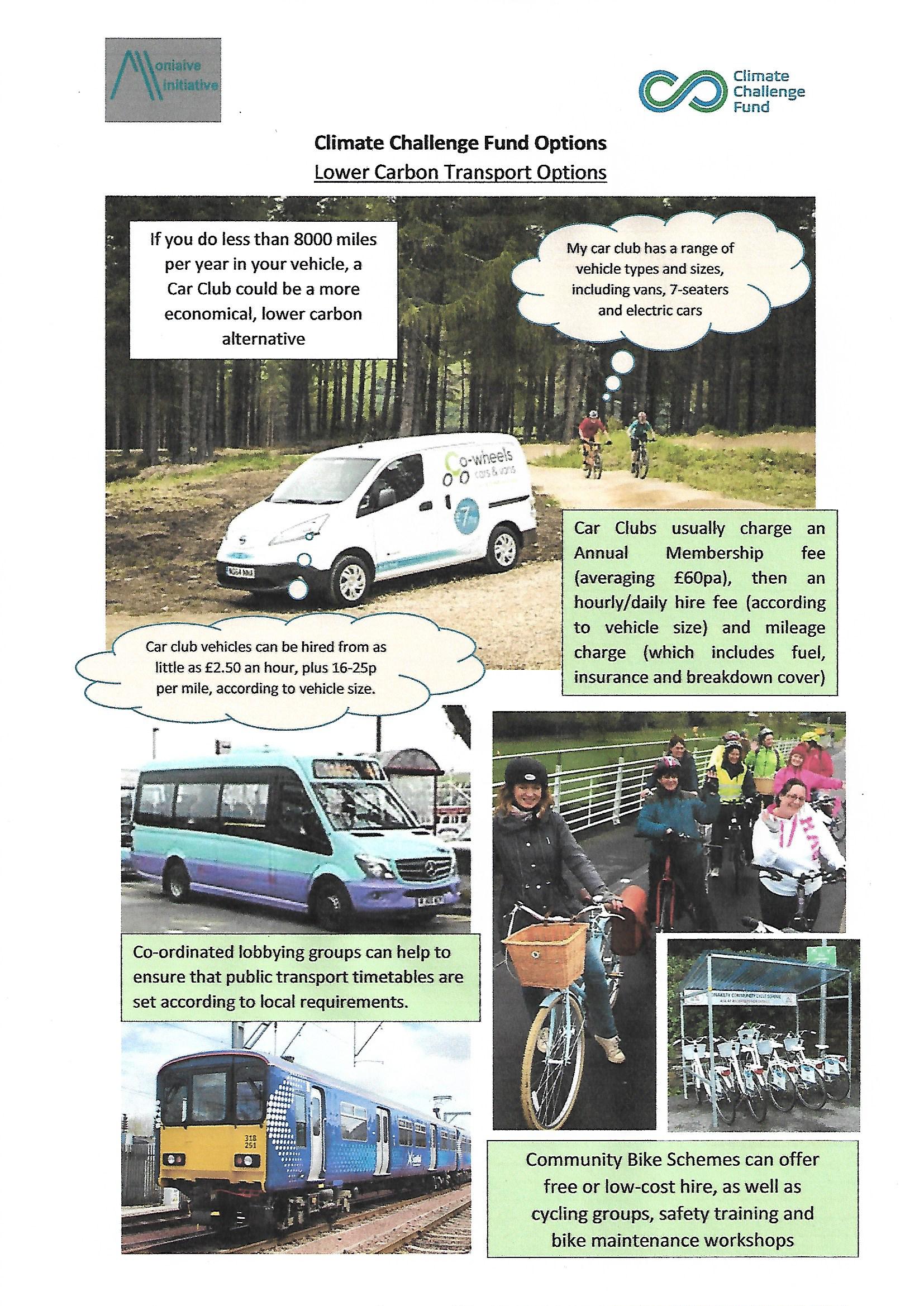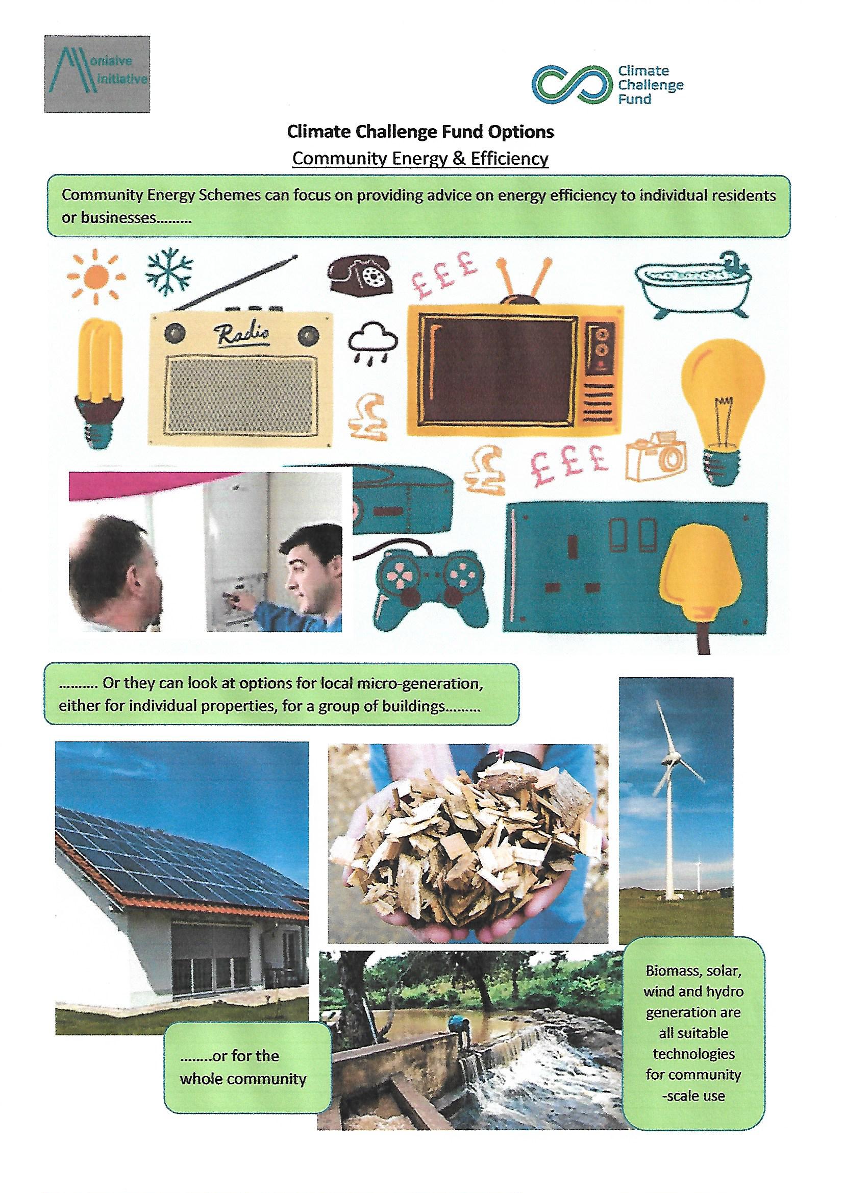 We have spent the last few weeks using our Development Grant from the Climate Challenge Fund to look at ideas for possible carbon reduction projects in Glencairn. These are some of the ideas that have come out of our local consultation. (You can get a closer look by clicking on the individual pictures.)