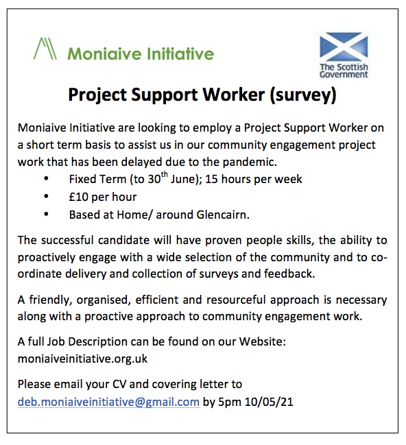 April 22, 2021April 22, 2021 moniaiveinitiative Project Support Vacancy (Survey) Project Support (Survey) – Moniaive Initiative requires a Project Support Officer on a short-term, temporary basis, to help us deliver the next stage of our Community Consultation. A full Job Specification can be found here: project-support_survey_job-spec_apr21Download Share this: Click to share on X (Opens in new window) X Click to share on Facebook (Opens in new window) Facebook Like Loading... Related