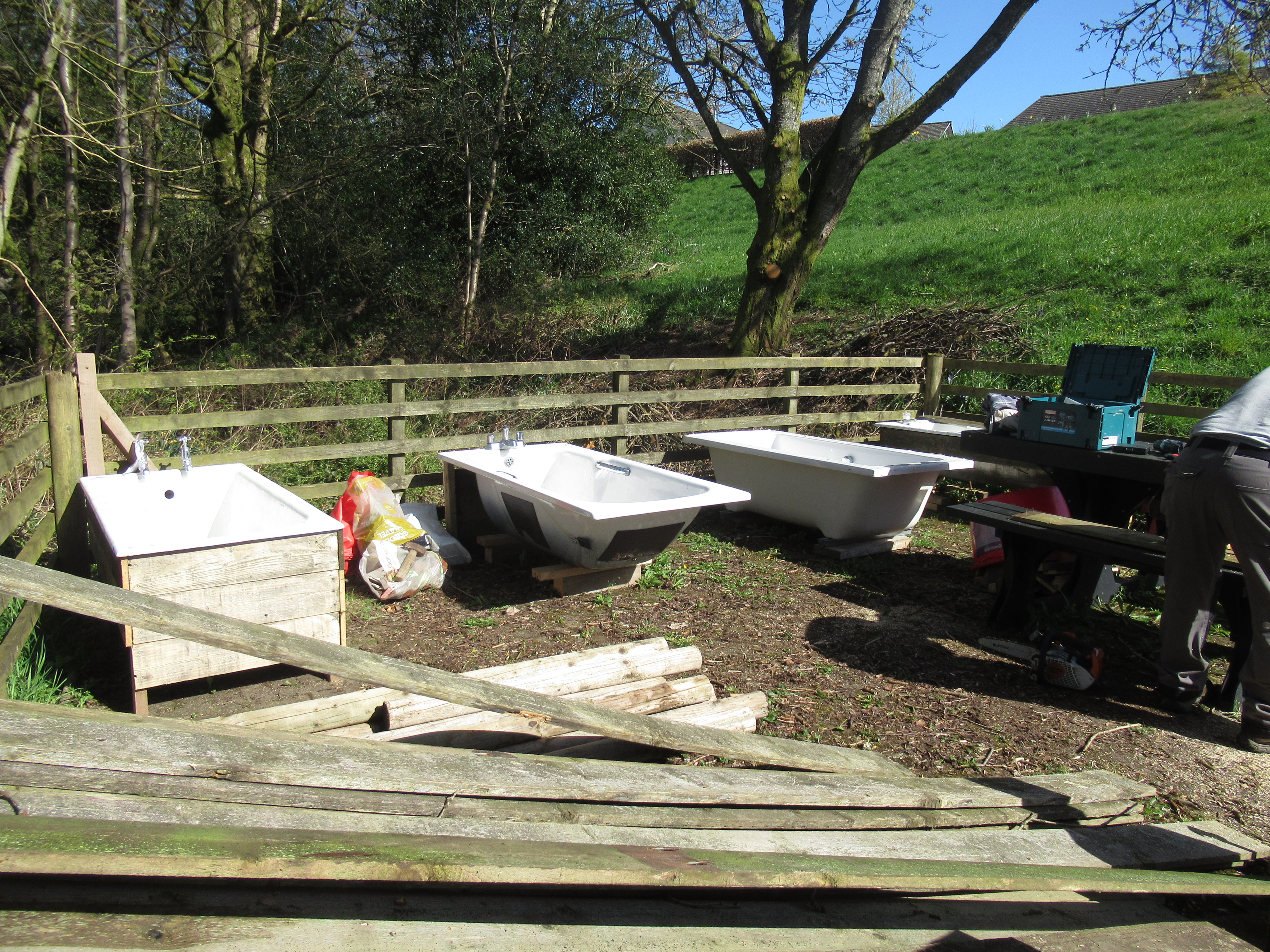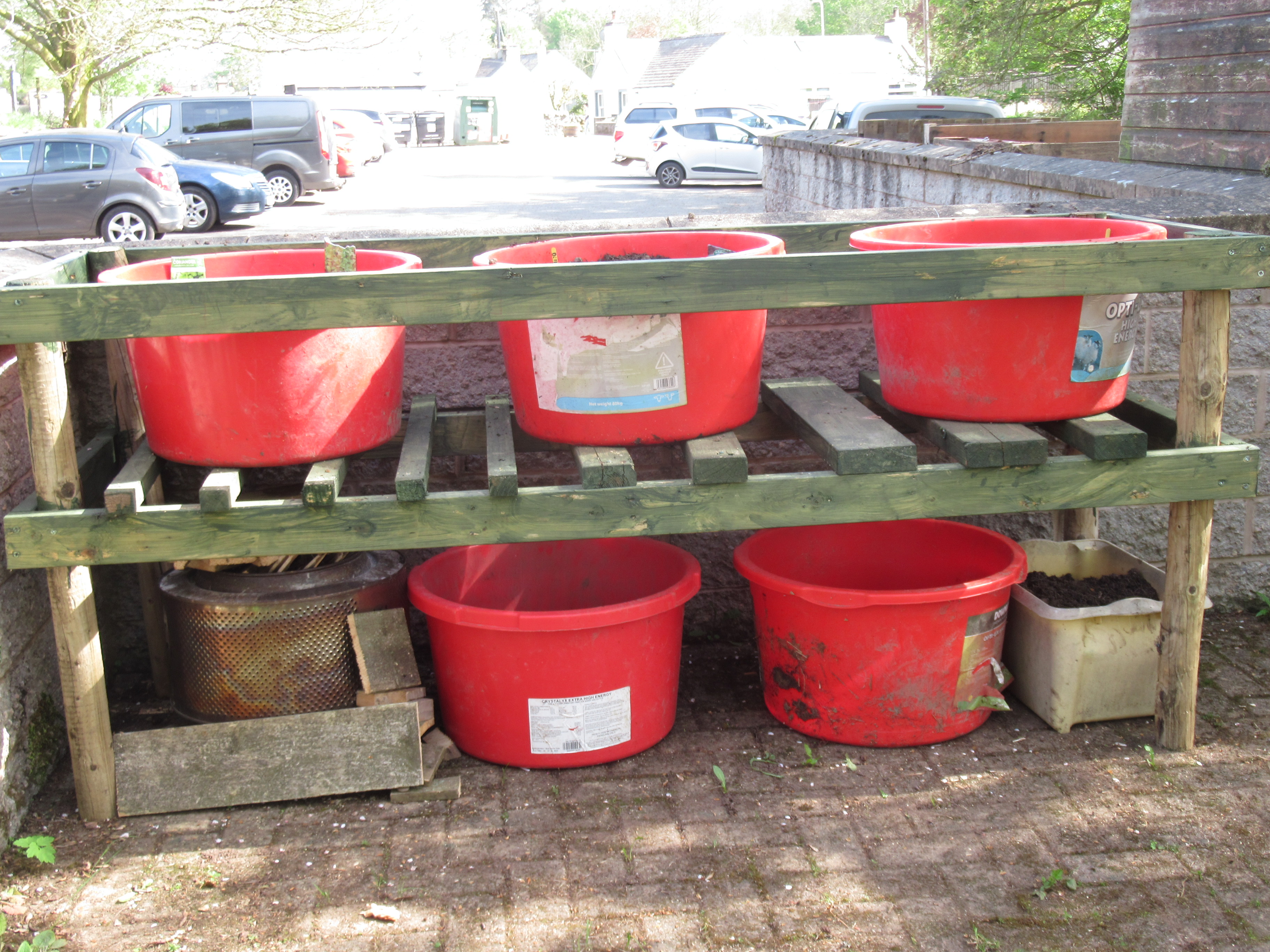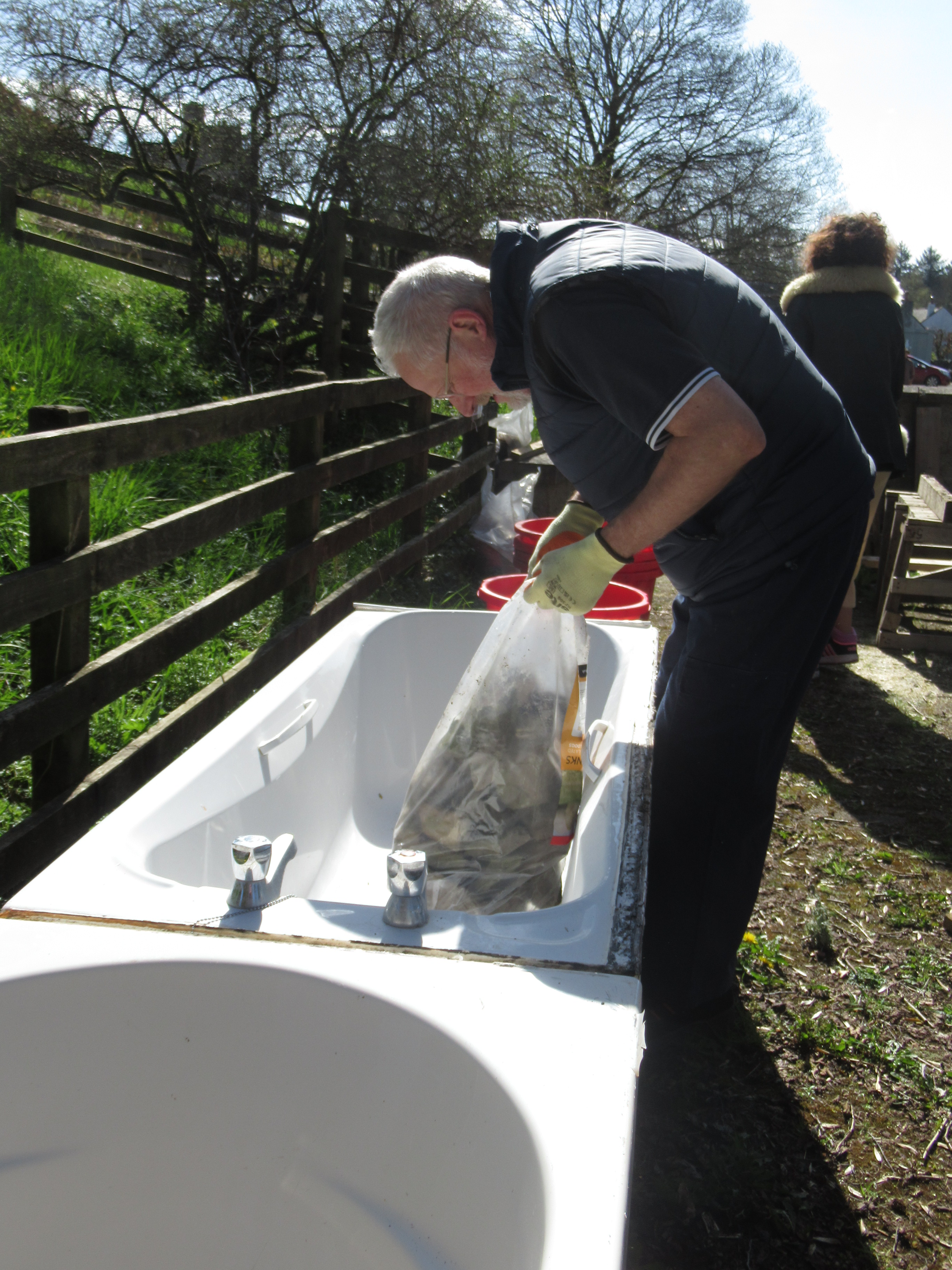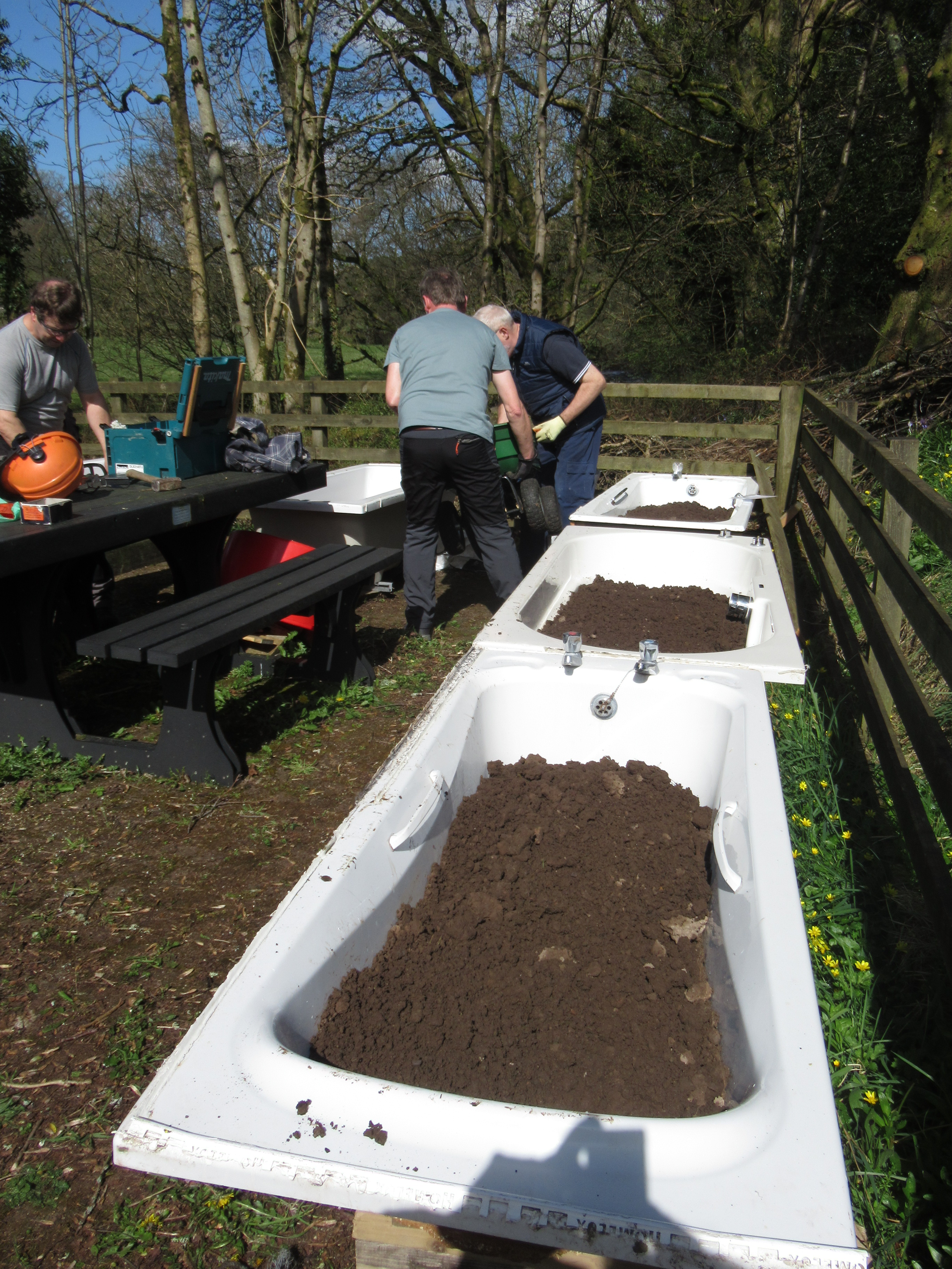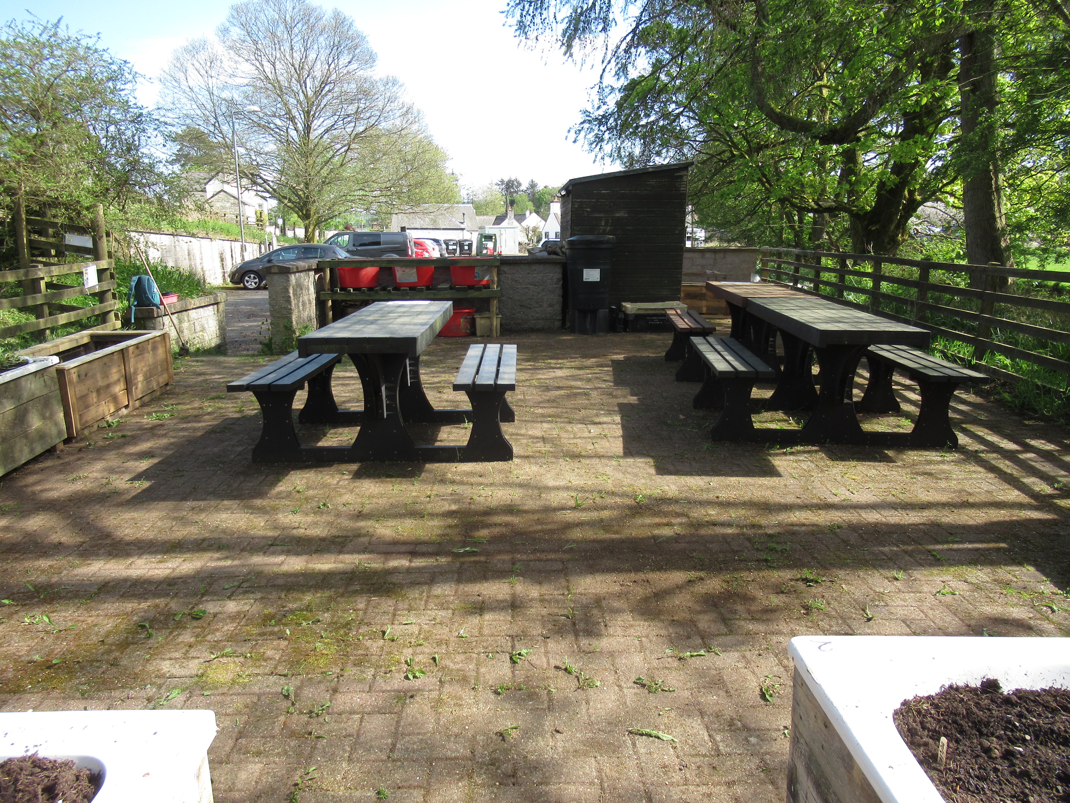 Volunteers have been busy creating a new Community Garden in the Picnic Site at the Village Car Park since the start of the year. A donated shed has been moved into place and re-roofed and refurbished. Pallets have been turned into a Compost area. Donated baths and other large containers have been boxed-in to create raised beds. And the Community Payback Team have constructed three new timber raised beds.