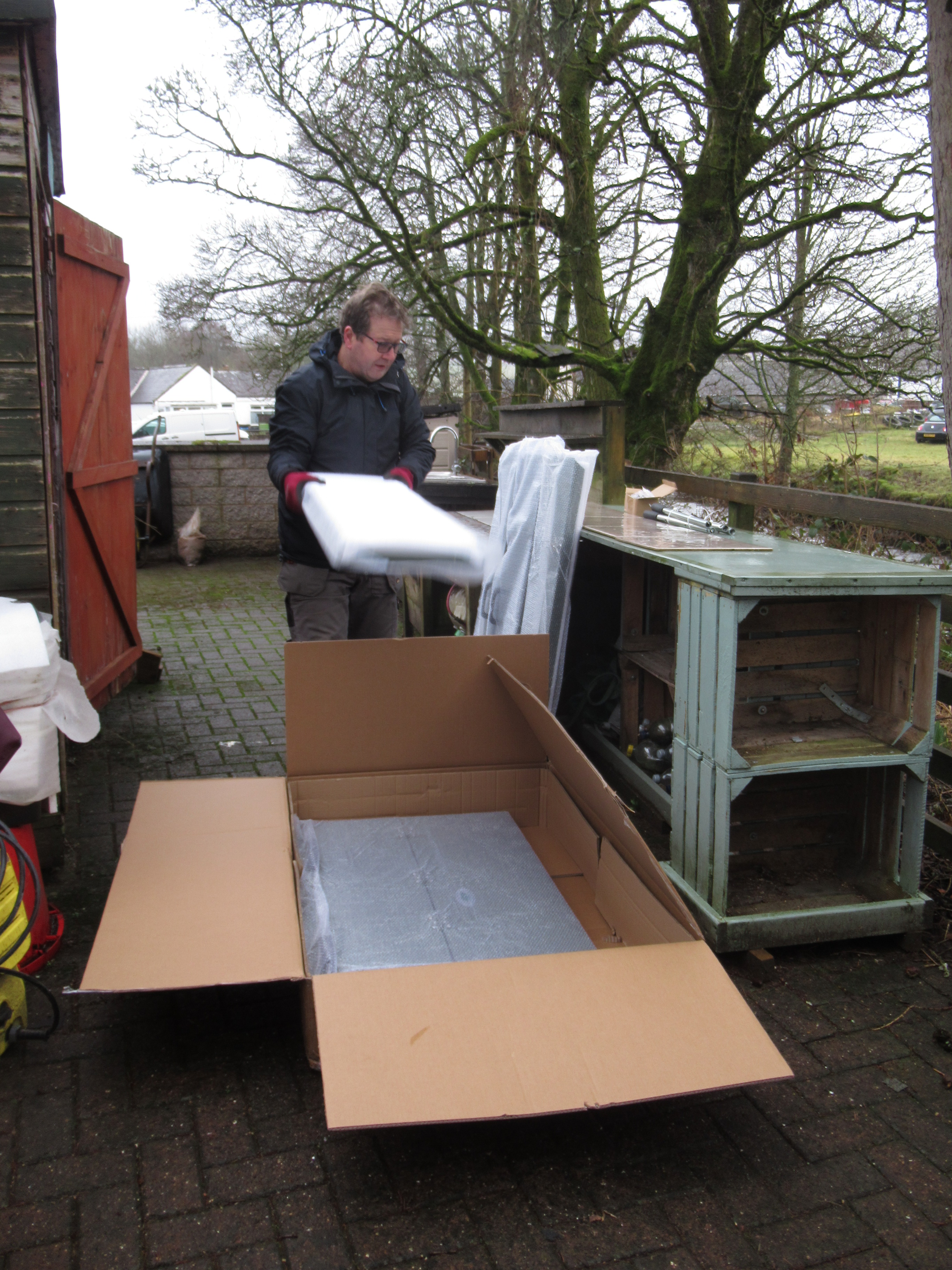 On a wet and windy 10th of February, a bunch of hardy volunteers came together in the Moniaive Community Garden to construct their new rotary Composter. After months of planning and preparation, we were finally ready to put together the Jora 400 Composter gifted to us through the Propagate and DG Community Food Network pilot community composting project (funded by Third Sector Dumfries and Galloway). Under the watchful eye of Senga (DG Climate Hub), we were the first of the three communities taking part in the Trial to construct our new composter.